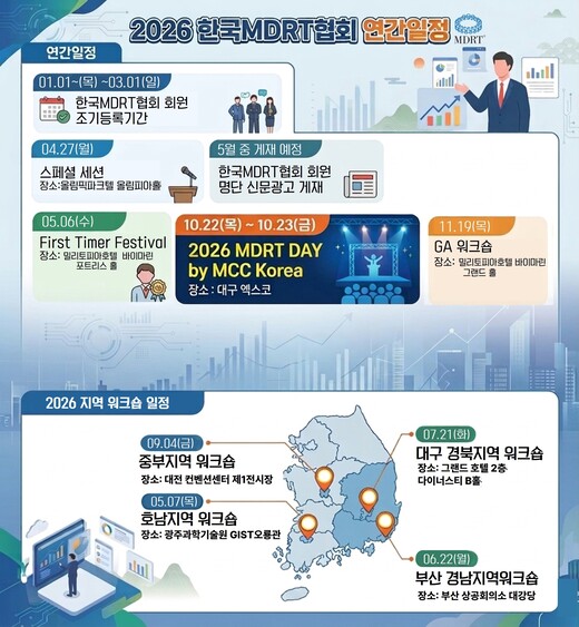 한국MDRT협회, 2026년 등록 기준 발표…등록 의무·조기할인 적용2026-01-23